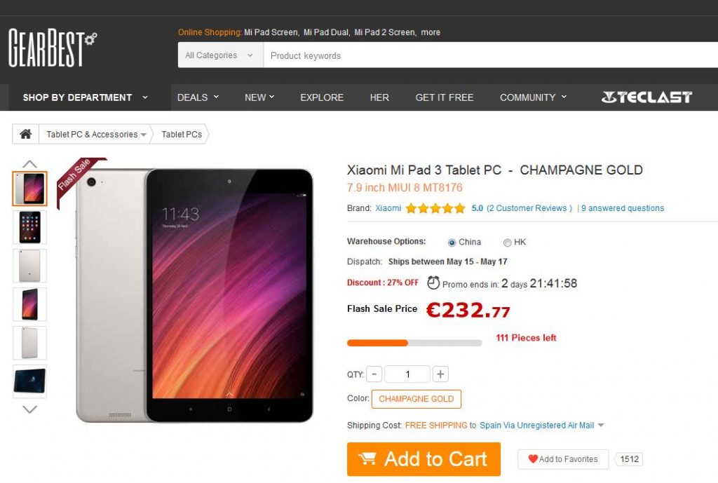 Esta tercera revisión de la serie Mi Pad podremos conseguirla por 232€ con envio gratis a través de la tienda online GearBest.