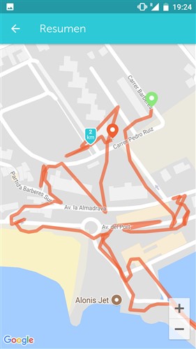 Las pruebas con Runkeeper fueron correctas aunque en algún punto se desviaba bastante de la trayectoria, con Navigator sin embargo funciono bien sin salirse de la ruta.