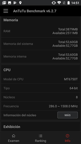 En Ajustes podemos ver la capacidad real del almacenamiento, en nuestro caso después de instalar aplicaciones tenia 2,46GB ocupados de un total de 53.60GB libres.