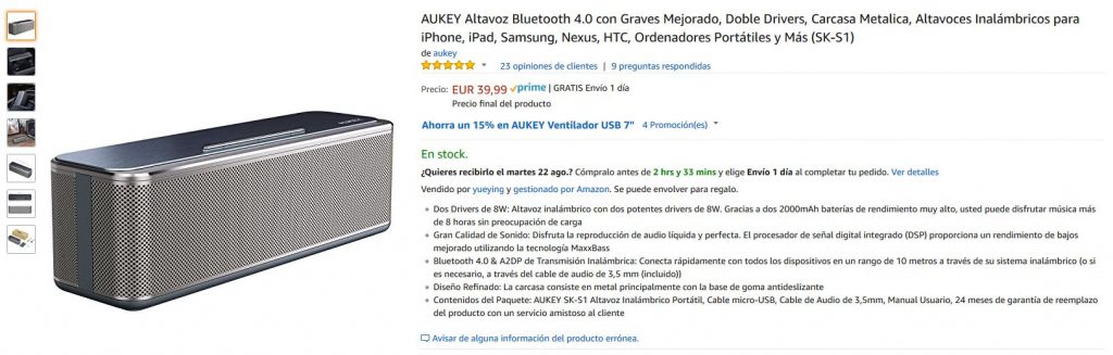 Por cortesía de la compañía Aukey he podido probar uno de sus últimos productos, un altavoz bluetooth con sonido estéreo y una calidad de sonido bastante buena.