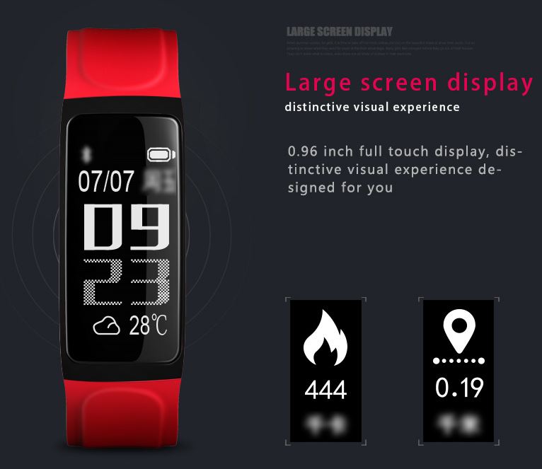 Entre sus características destaca por su amplia pantalla, a falta de conocer la cantidad de pixels el tamaño de pantalla es de 0.96 pulgadas, nos permitira leer notificaciones de aplicaciones de mensajeria, la pantalla es tactil y podremos controlarla mediante toques o deslinzando el dedo sobre ella.