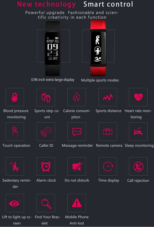 Entre las opciones soportadas podemos ver que nos permitira controlar otros deportes ademas de los pasos y calorias, podremos controlar ademas la camara de nuestro movil para realizar fotos y tambien dispone de funcion antiperdida.