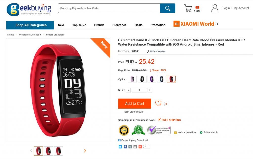 Podemos verla disponible en varios colores por 25€ aproximadamente en la tienda online Geekbuying.com, podéis utilizar el cupón GKBC7S para obtener un descuento de 4$.