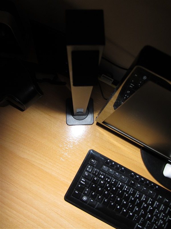 Situada justo al lado del monitor apenas ocupa espacio, con una altura de 41cm queda a la altura de un monitor de 24 pulgadas.