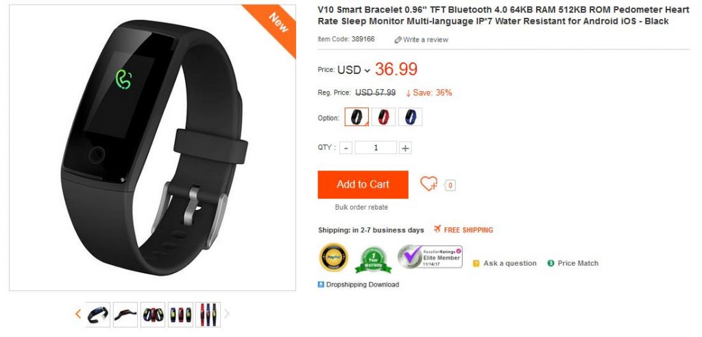 Esta disponible por 36.99$ (32€ aproximadamente) en la tienda online Geekbuying.com pudiendo elegir el color de la banda en negro, rojo o azul.