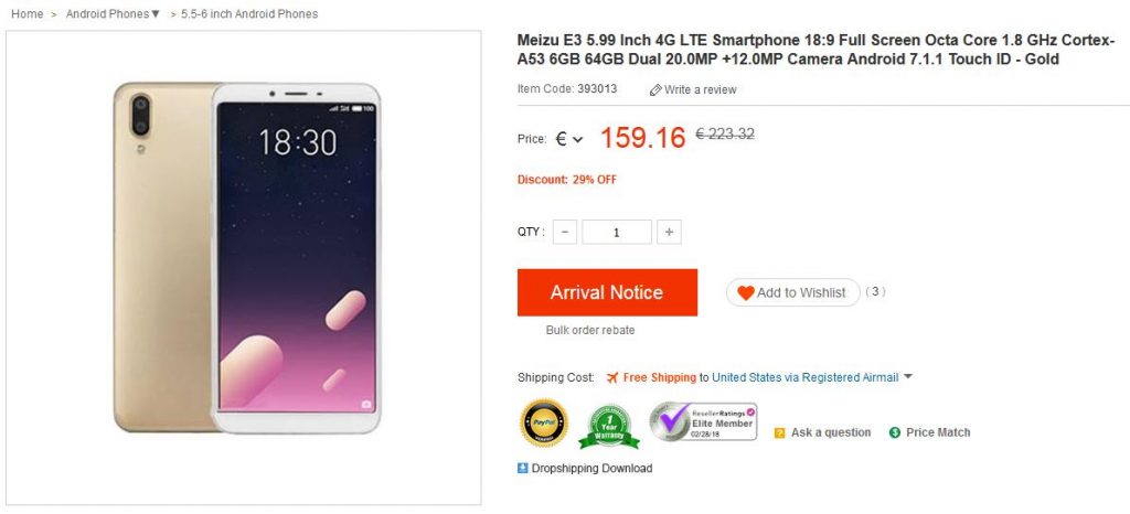 El Meizu E3 podría llegar a ser un serio oponente al resto de marcas del lejano oriente, podemos verlo anunciado en la tienda online Geekbuying, el precio mostrado lo situaría entorno a los 160€
