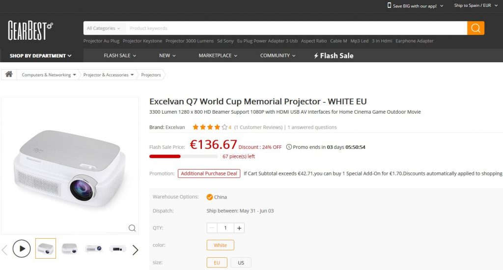 Este modelo esta disponible en oferta por 136,67€ con envio gratis en la pagina de Gearbest.com, la promoción finaliza en 3 dias recuperando su precio original.