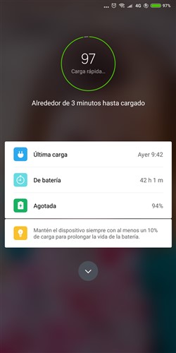 La bateria tiene una capacidad de 4000 mAh, dependiendo de su uso podremos aguantar un par de dias sin necesidad de cargarlo de nuevo, en las pruebas realizadas aguanto 1 dia y 11 horas con un uso de pantalla de 5 horas con 45 minutos.