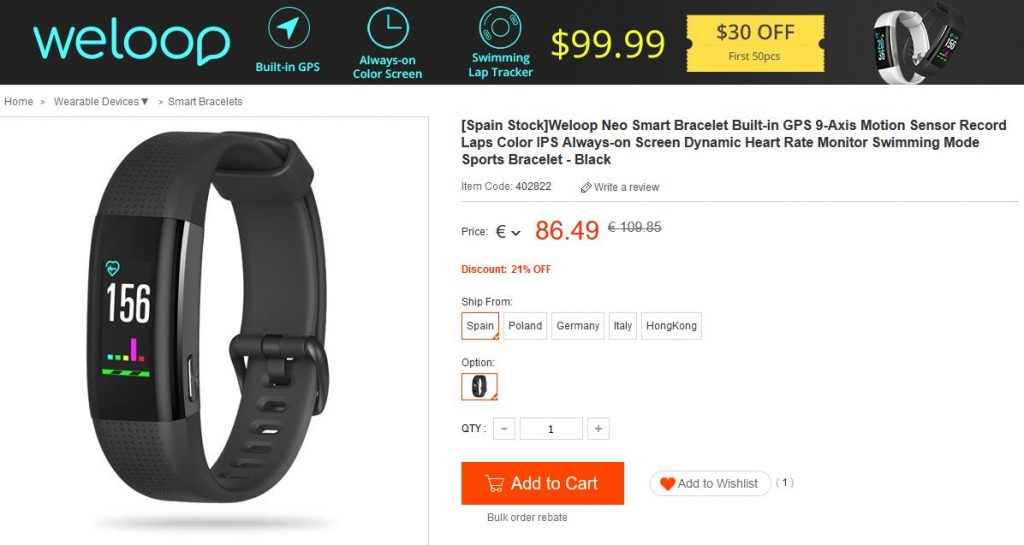 Podemos encontrarla en oferta por 86€ en la tienda online de Geekbuying con envio desde España, tambien podremos encontrarla en distintos vendedores en Aliexpress, el precio es algo mas elevado que otras pulseras analizadas anteriormente, aunque falta ver si cumple con sus especificaciones,si es asi puede ser interesante para un uso deportivo.