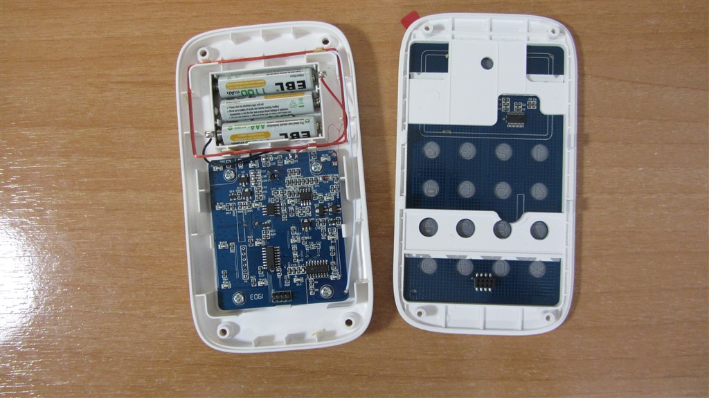 Funciona con 3 pilas AAA que no vienen incluidas, para poder colocarlas tendremos que quitar los cuatro tornilos traseros, podeis apreciar los dos orificios para colgarlo y el pulsador central que activará la alarma si se separa de la pared.