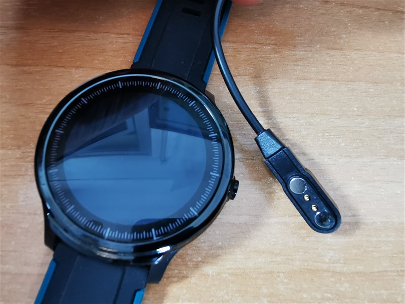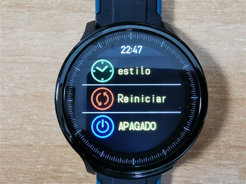 El reloj tiene un bonito diseño, bastante compacto, tiene una pantalla circular de 1.3 pulgadas, en la parte trasera encontramos el sensor de ritmo cardíaco y los conectores para cargarlo.