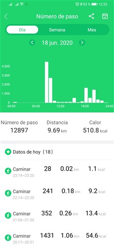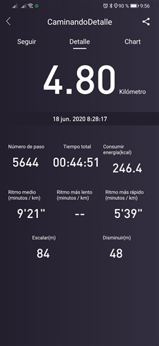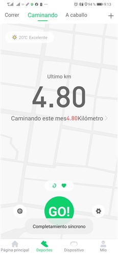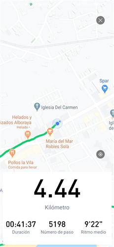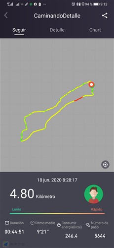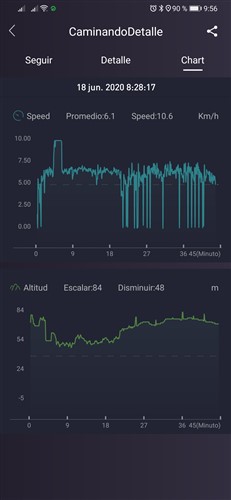 En la pestaña de Deportes podremos monitorizar rutas de distintos deportes, Correr, Caminar, Montar en bici, etc, de esta forma utilizara el gps de nuestro terminal, ya que el reloj no dispone de gps, aquí os dejo unas capturas de una ruta caminando, en ella podemos ver la ruta y los detalles del recorrido.