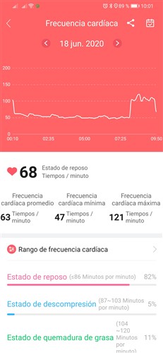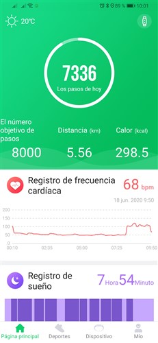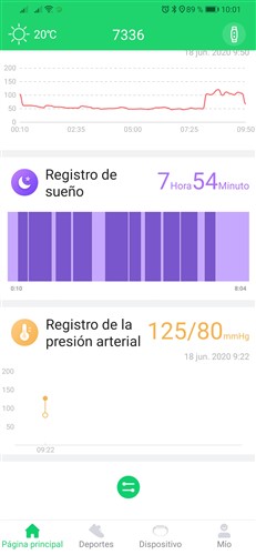 Desde el menú principal podremos controlar los pasos diarios, el ritmo cardiaco, el registro de sueño y las tomas de presión sanguínea, una vez sincronizado podremos ver tanto los registros diarios como del resto de días almacenados