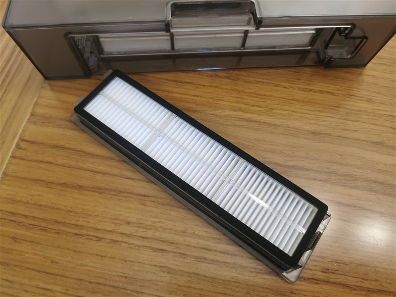 El recipiente de aspirado tiene una gran capacidad «570 ml», de forma que podremos limpiar varios días sin necesidad de vaciarlo cada día, en la parte trasera podemos ver el filtro hepa, podremos sacarlo para limpiarlo y en caso de necesitar recambios podremos encontrarlos a buen precio en Amazon o en Aliexpress.