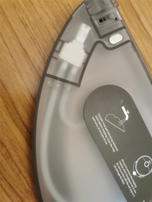 El recipiente para el agua tiene una capacidad de 270 ml, a diferencia de otros modelos mas económicos este recipiente tiene una pequeña bomba con la que podremos controlar desde la aplicación la cantidad de agua que suelta al fregar, la mopa va situada en la parte inferior, podremos quitarla para lavarla cuando este muy sucia.
