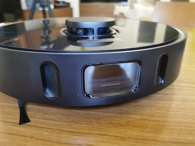 En la parte frontal podemos ver los sensores Laser 3D, que utiliza tanto para mapear la casa como para detectar y evitar objetos y muebles, gracias al Sensor Lidar y a los sensores laser el robot no chocara con objetos o muebles evitándolos antes de llegar a ellos.